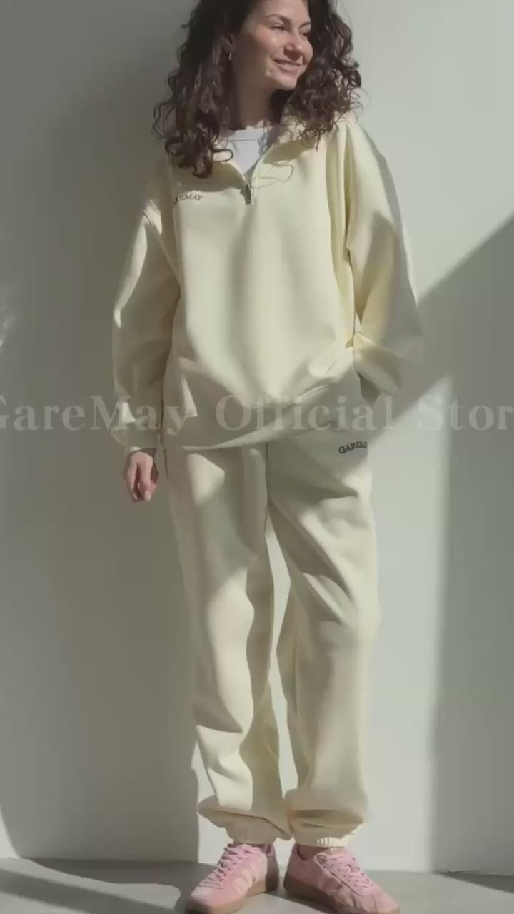 With its soft and relaxed look, this two-piece set embodies the perfect balance between comfort and urban elegance. Comprising a zip-up top with a shirt collar and high-waisted, straight-leg pants, it offers a fluid and modern style suitable for mid-season. Crafted from a non-stretch cotton and polyester fabric, it guarantees a beautiful fit while remaining comfortable to wear. Embroidered details, functional pockets, and a neat finish add character to this oversized piece, available in bright pastel shades like classic pink or sunny yellow. A casual wardrobe essential to wear without moderation.